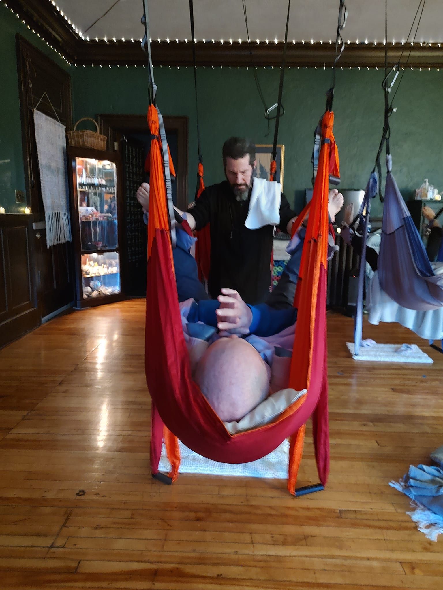 Come explore Trapeze Yoga. At The Space we specialize in Inversion Therapy, Meditation, and Relaxation to help reduces chronic pain and promote overall spinal health. Through step by step guidance you'll be hanging with us in no time!