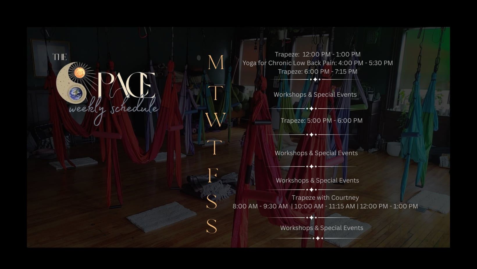 Come explore Trapeze Yoga. At The Space we specialize in Inversion Therapy, Meditation, and Relaxation to help reduces chronic pain and promote overall spinal health. Through step by step guidance you'll be hanging with us in no time!