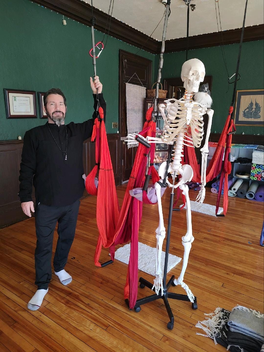 This 60 minute class uses gravity and the support of the trapeze to safely and gently pull you into a deep, full-body stretch and spinal traction with hanging inversion.